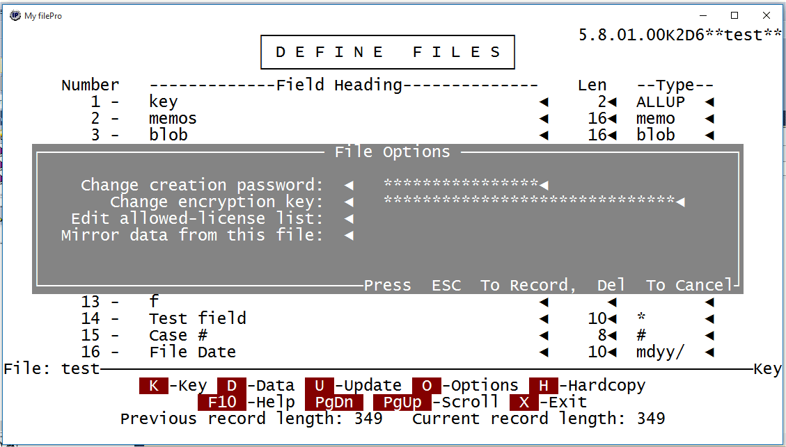 Then, in Define Files, select the filename that you wish to mirror. Press O for Options.