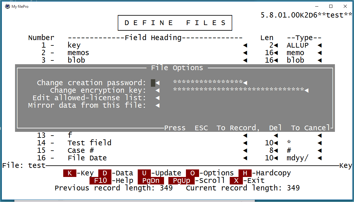 to a new machine and this file was encrypted, you would need to add the necessary information on the other filePro